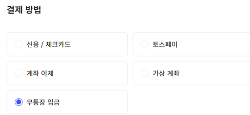 ⚠️ 주의사항 : 무통장입금(할인) 선택 후 할인 금액으로 카드 결제시 주문 자동