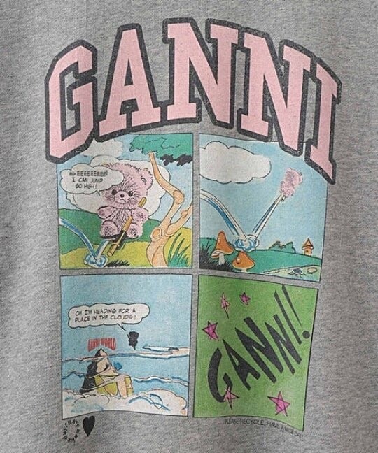 로고 플레이가 도드라 진 특징으로, 러블리함과 유니크함까지 가니가