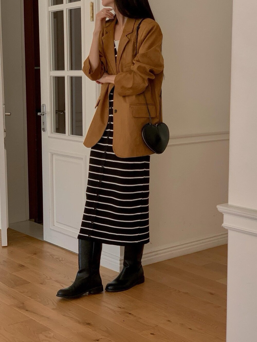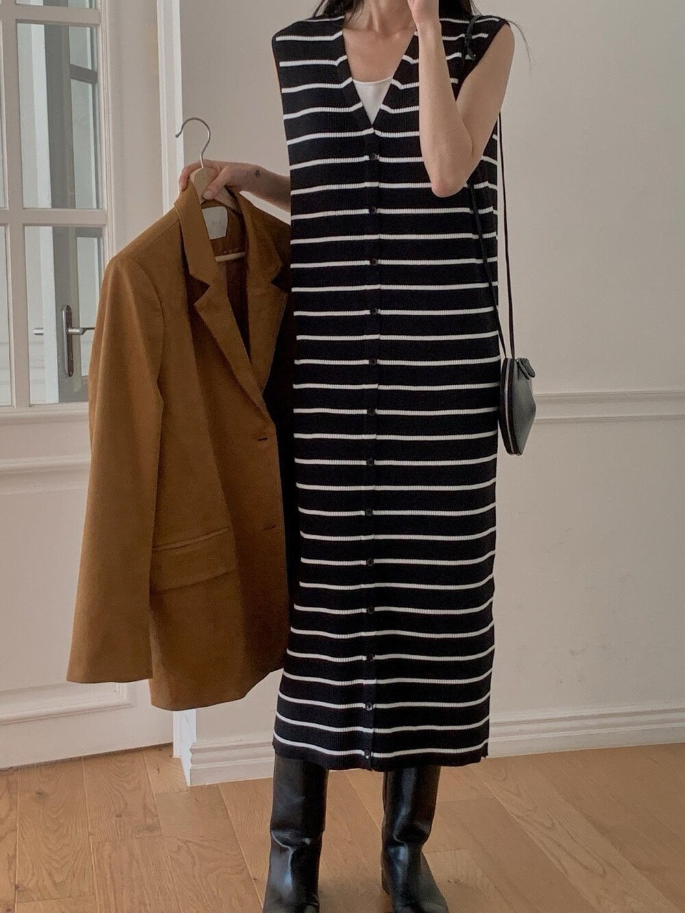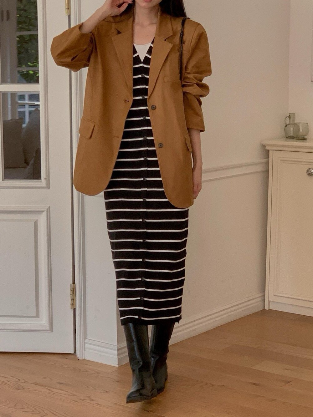 전체 탄탄한 핏감을 잡아주고 클래식하면서도 감각적인 스타일 링을 선사하는