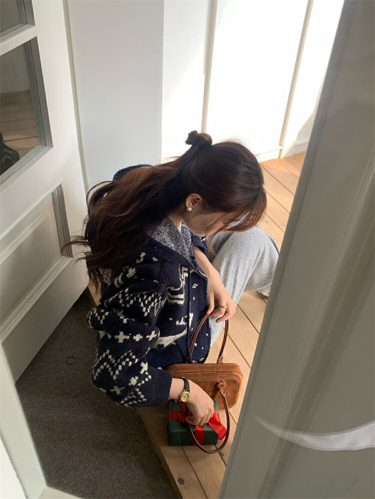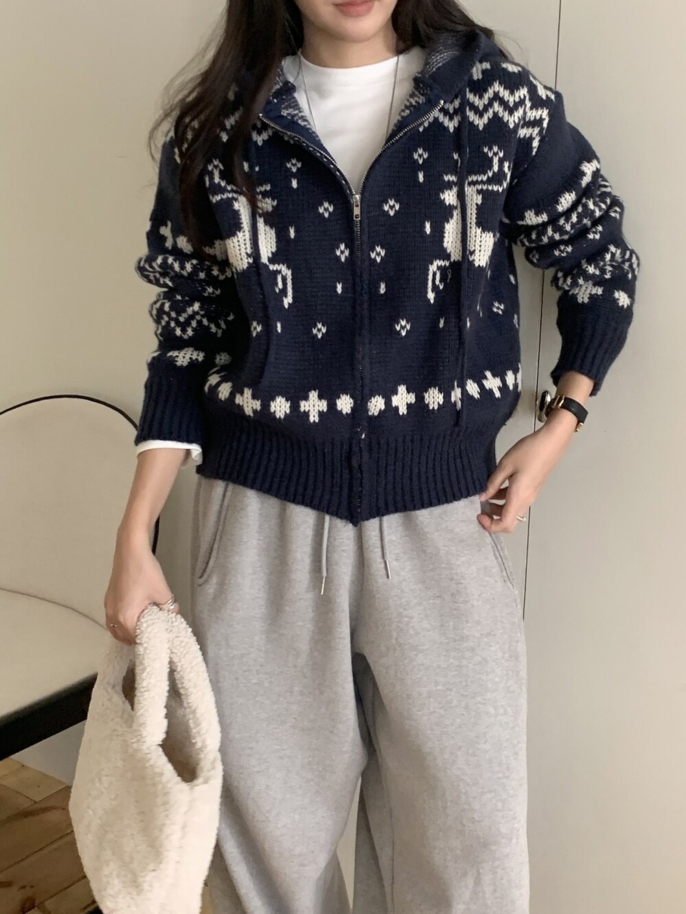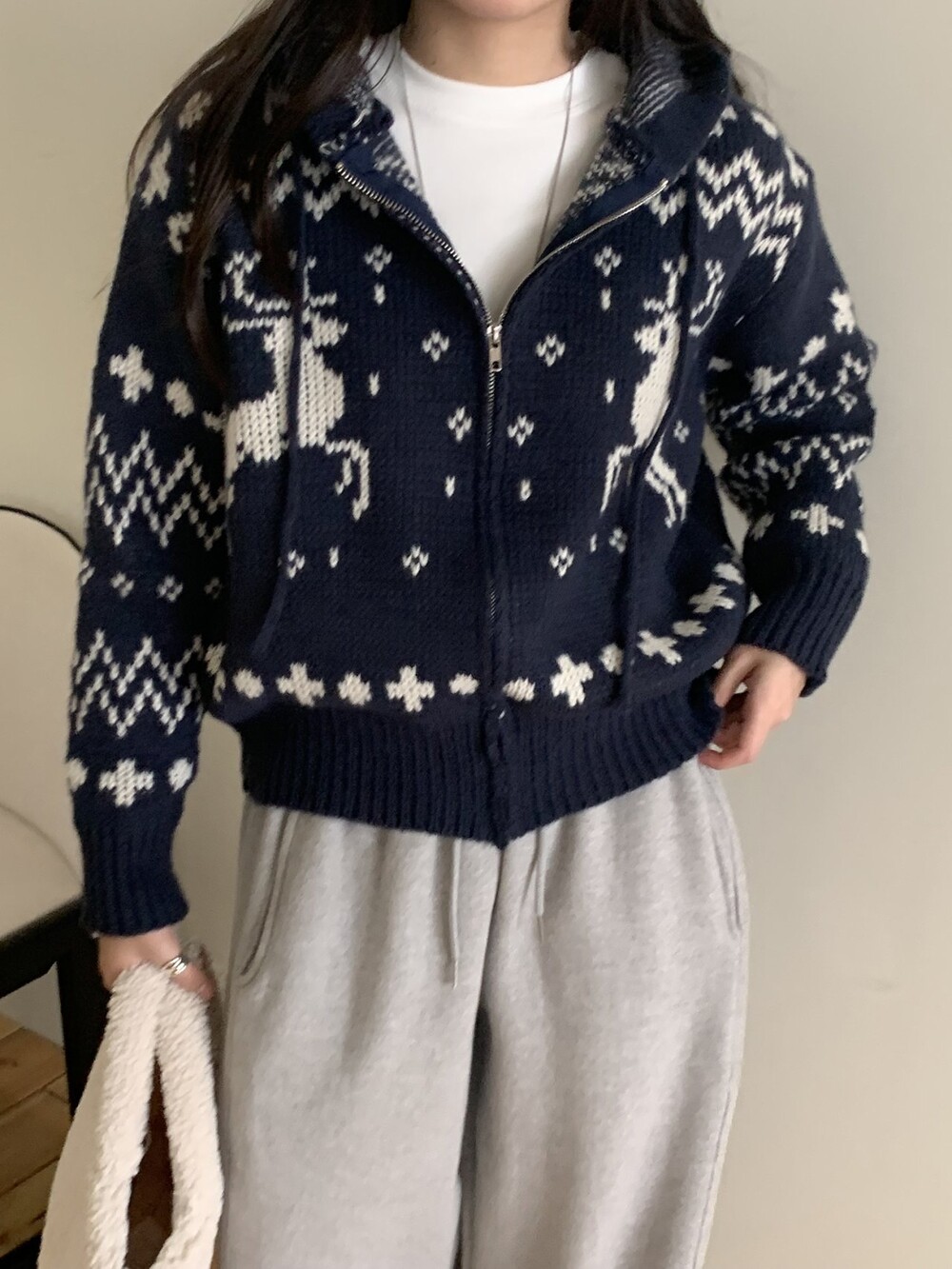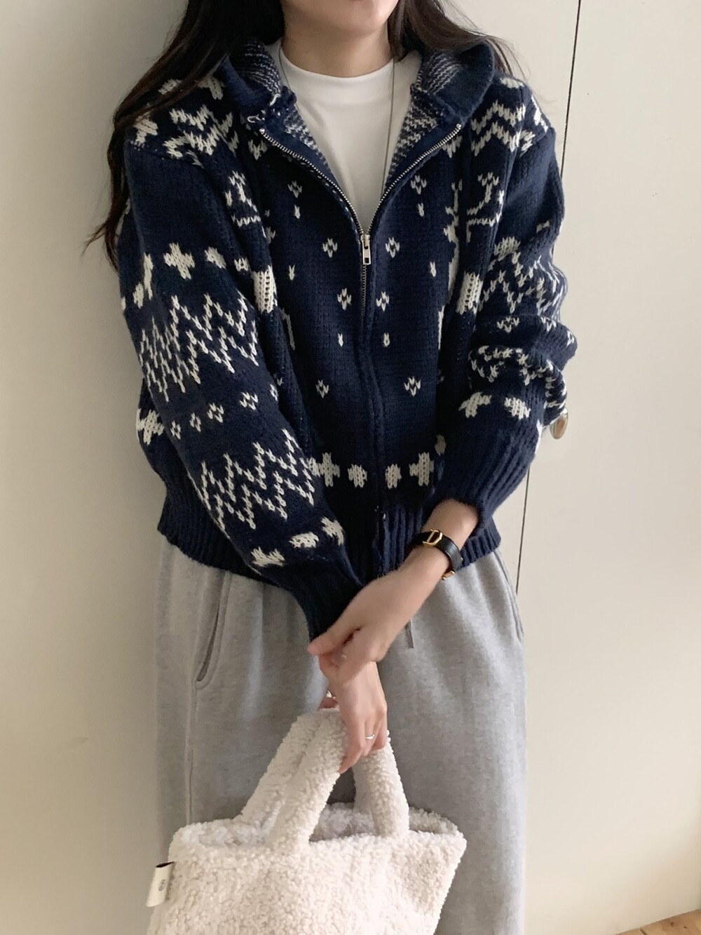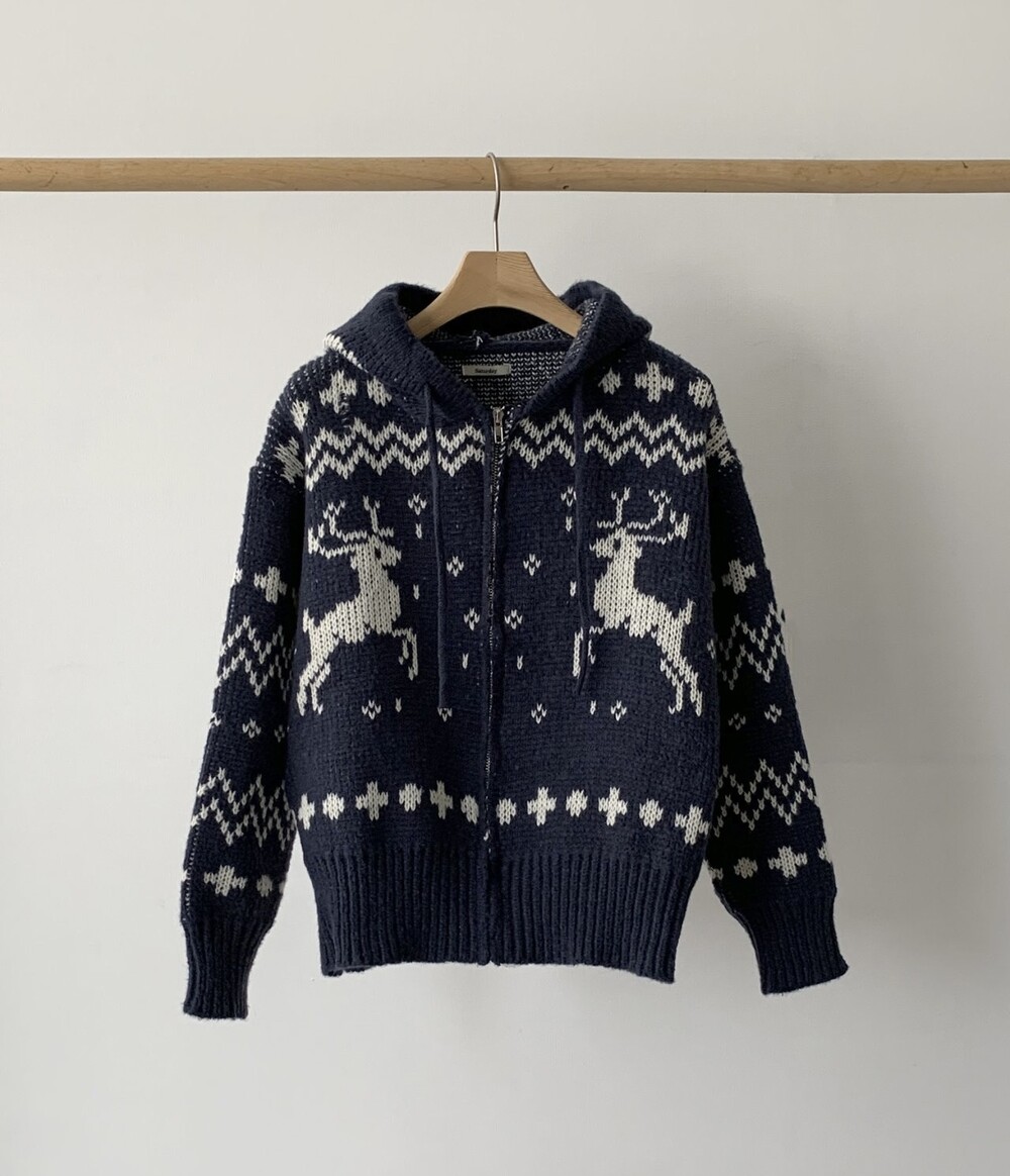 노르딕패턴의 겨울시즌 감성을 잘 살려준 디자인의 유행타지 않는 후드 집업