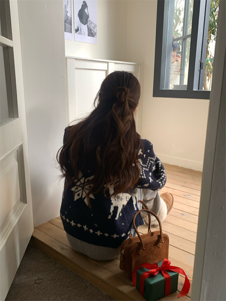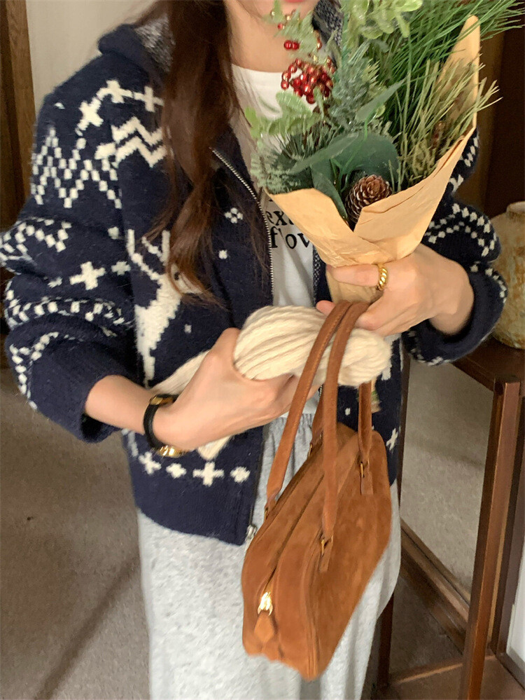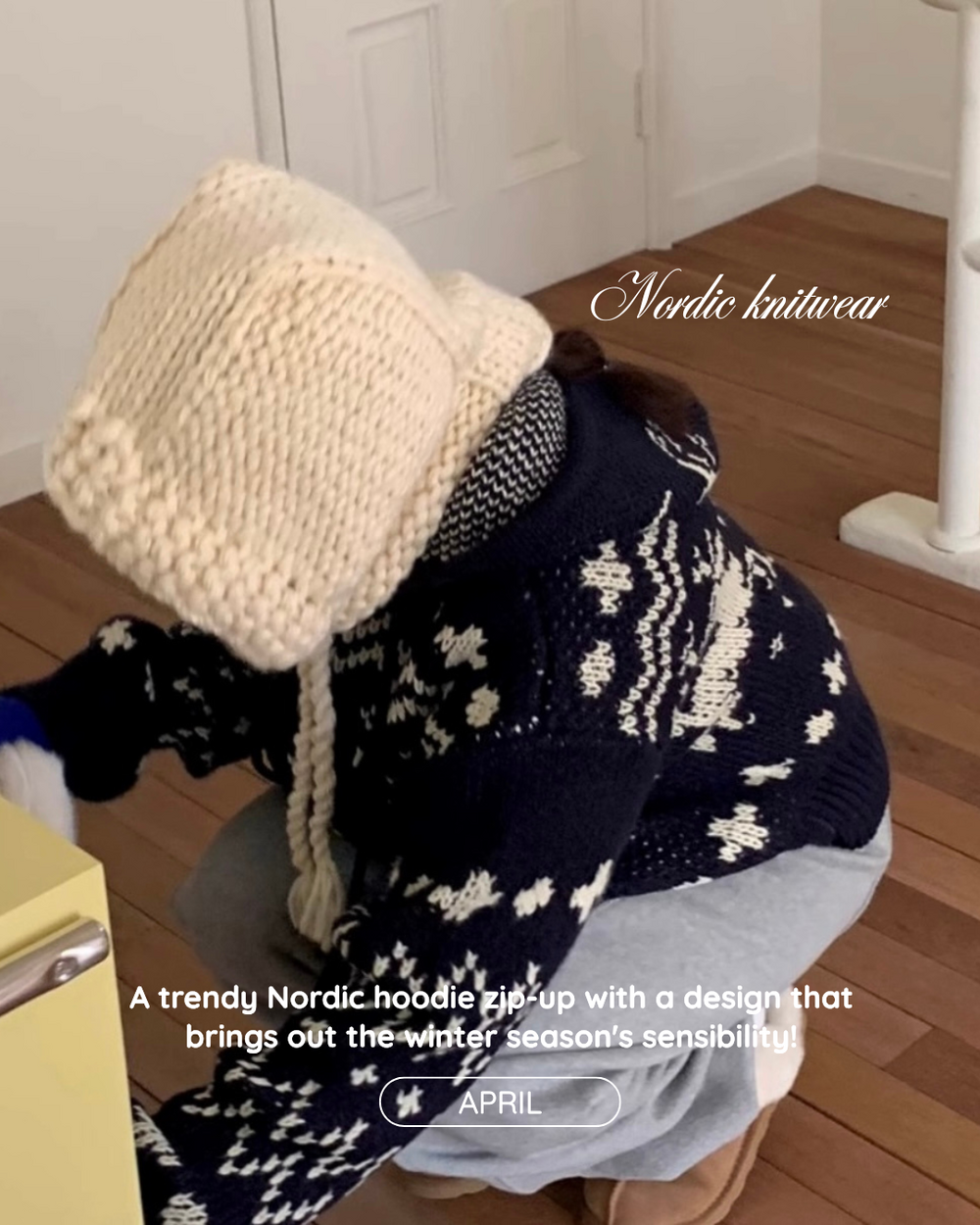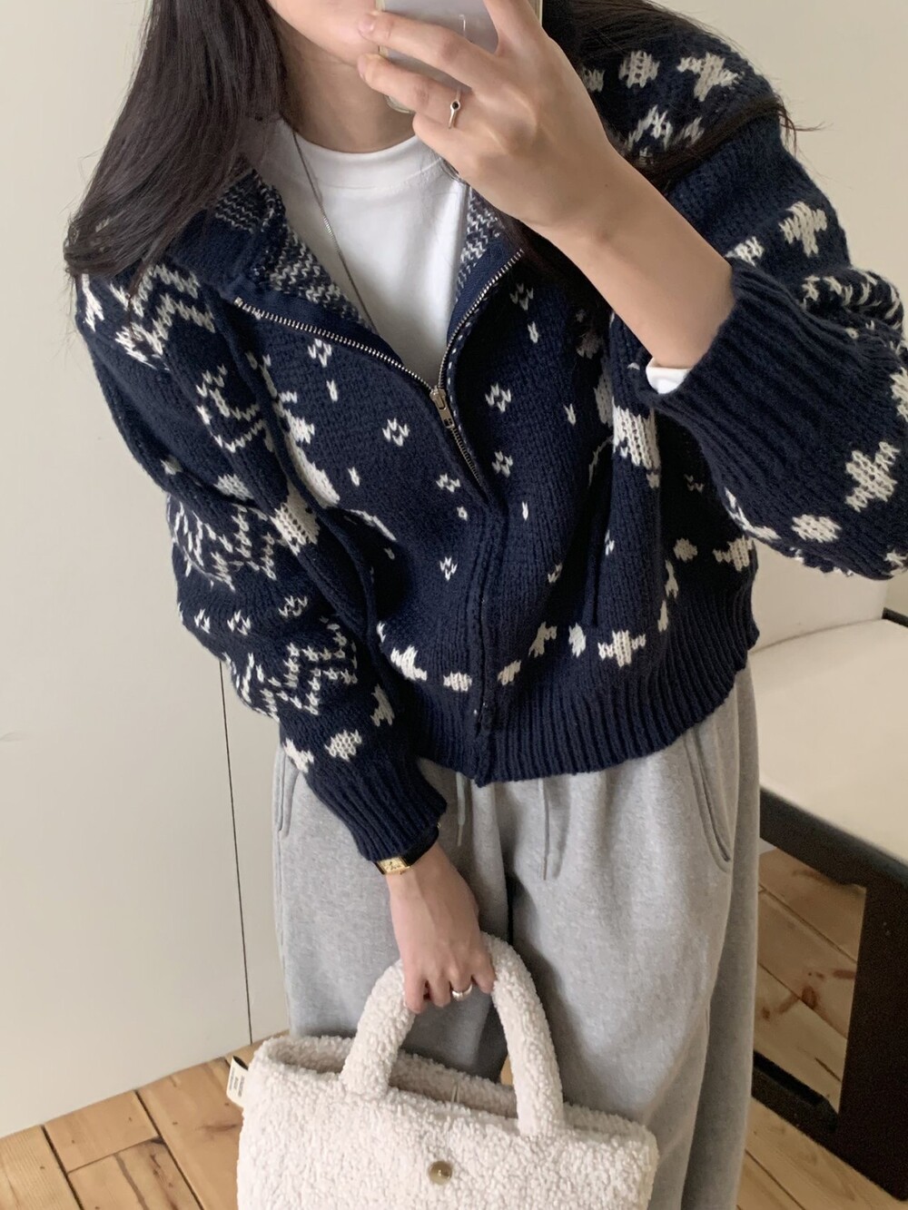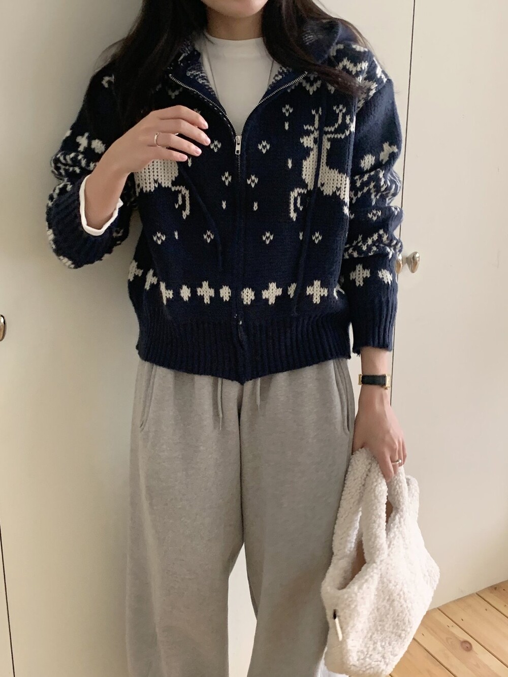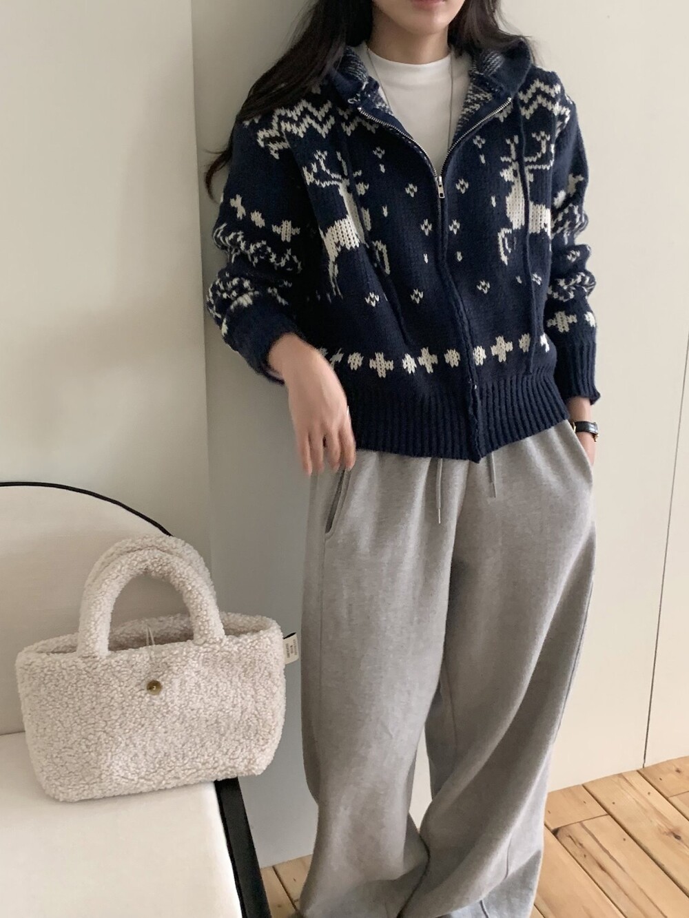 노르딕패턴의 겨울시즌 감성을 잘 살려준 디자인의 유행타지 않는 후드 집업