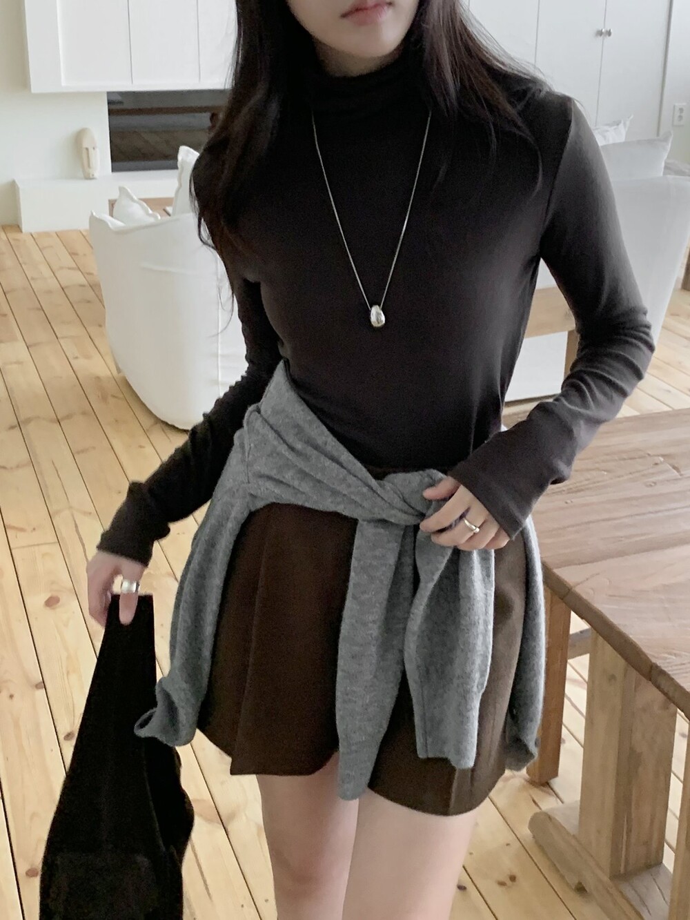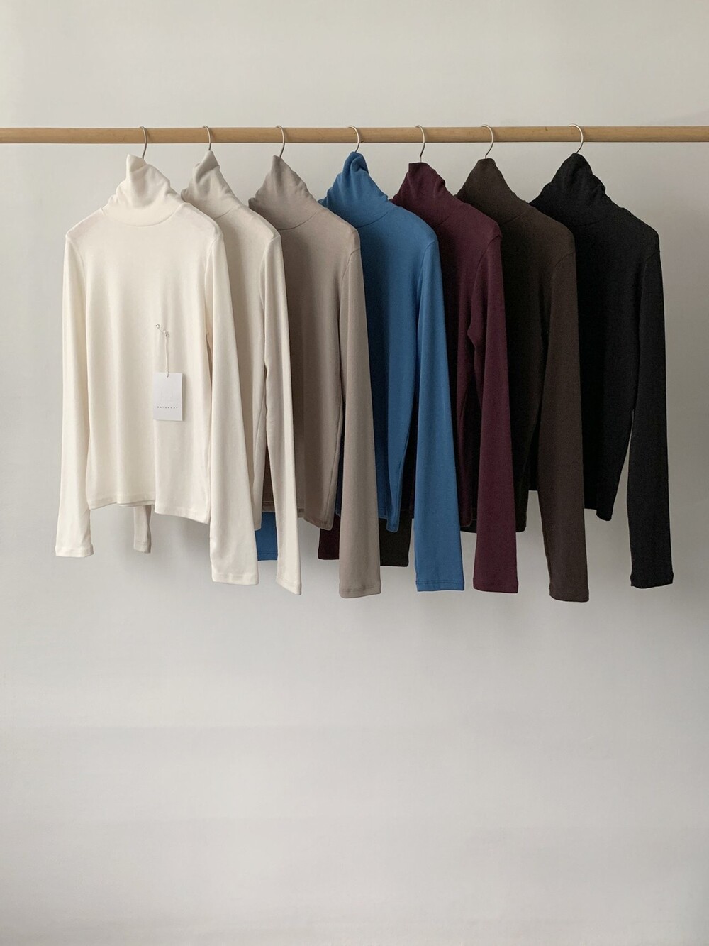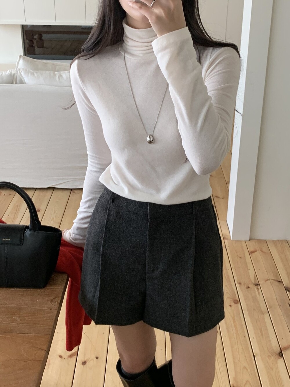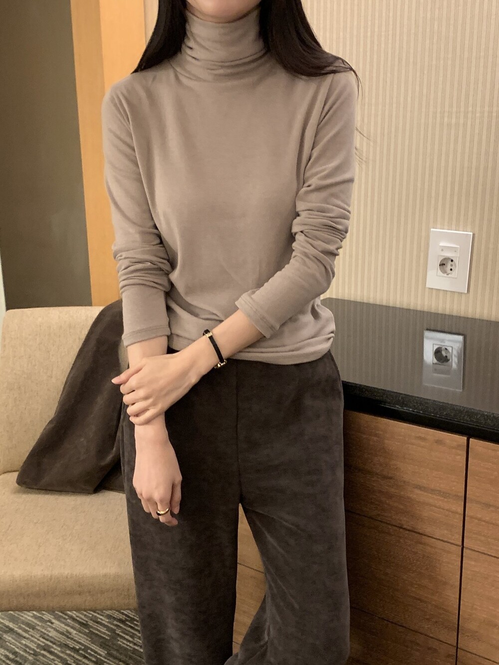 가볍고 유연한 울 혼방 소재로 제작된 울 폴라 티셔츠입니다.단독으로 입어도