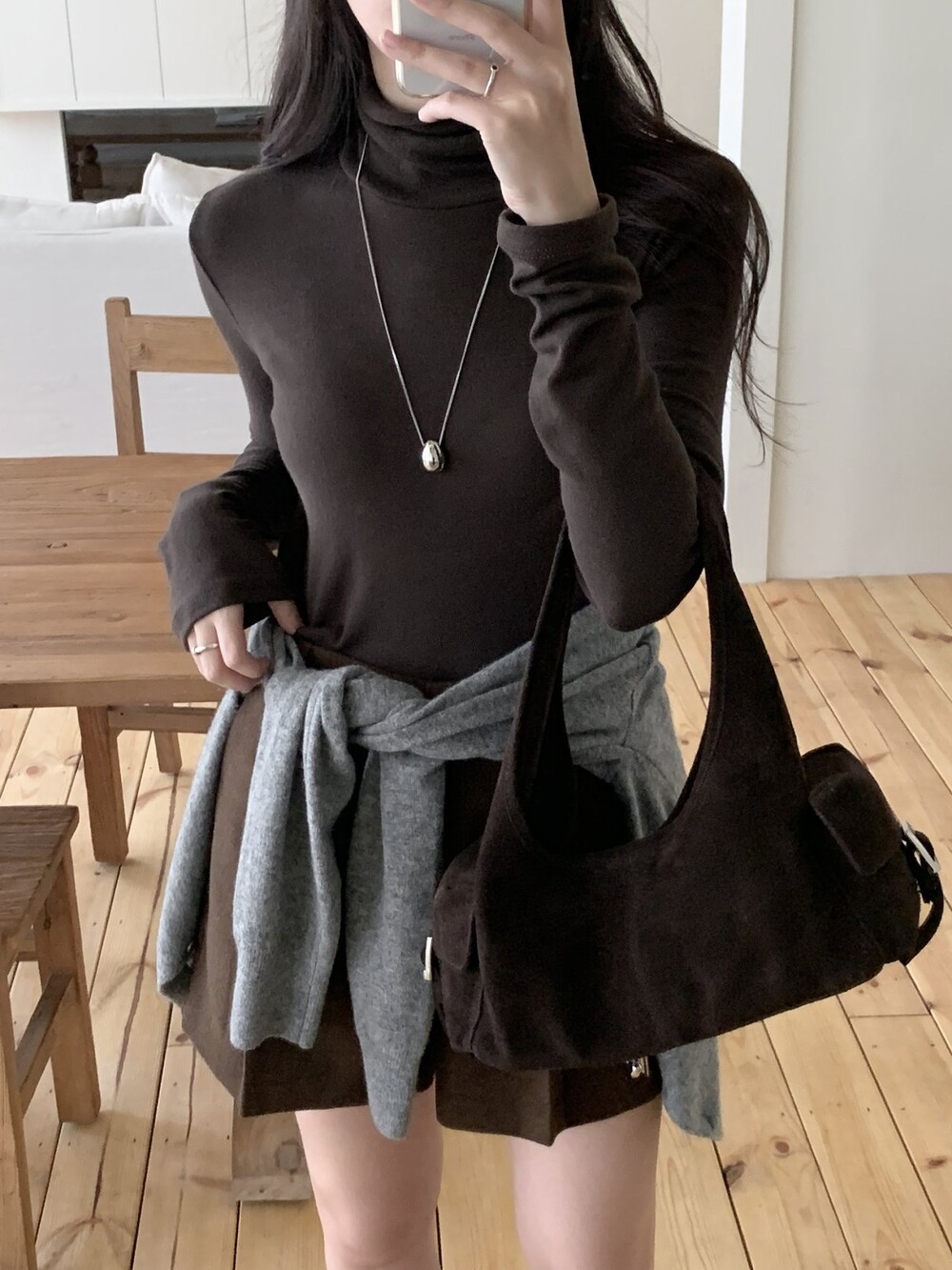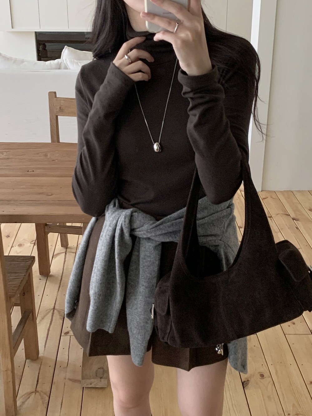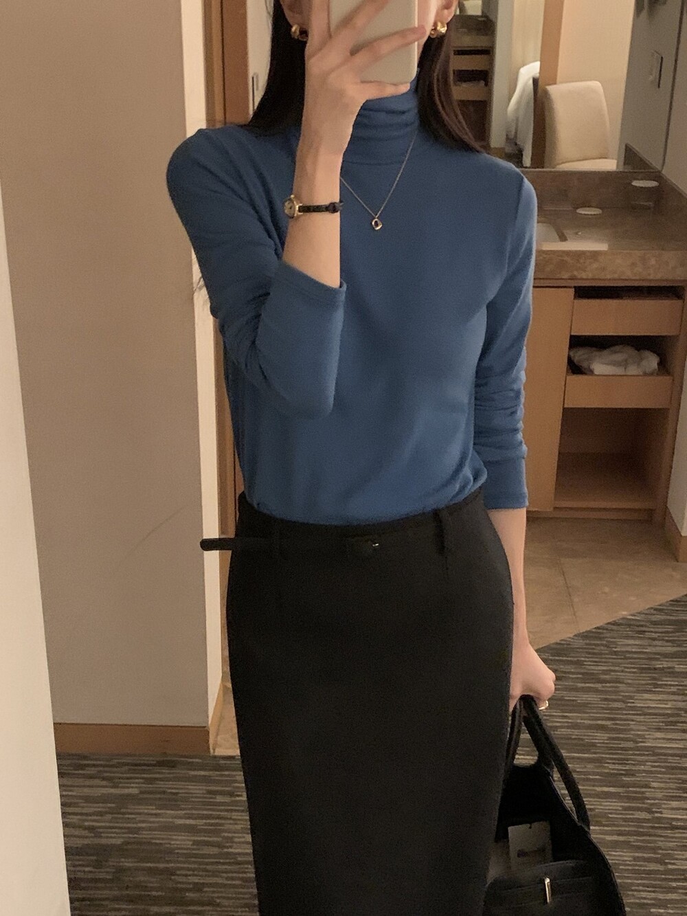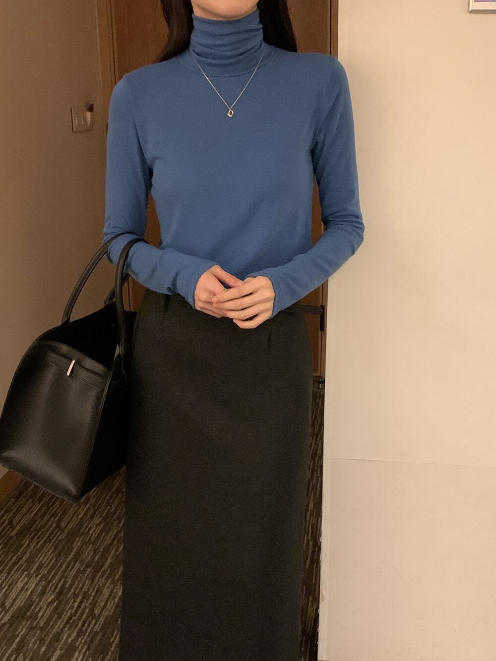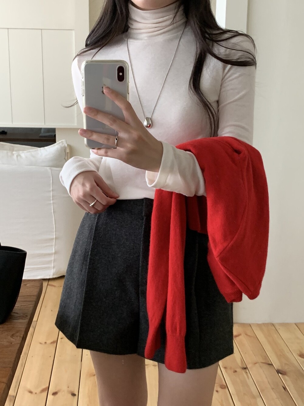 가볍고 유연한 울 혼방 소재로 제작된 울 폴라 티셔츠입니다.단독으로 입어도