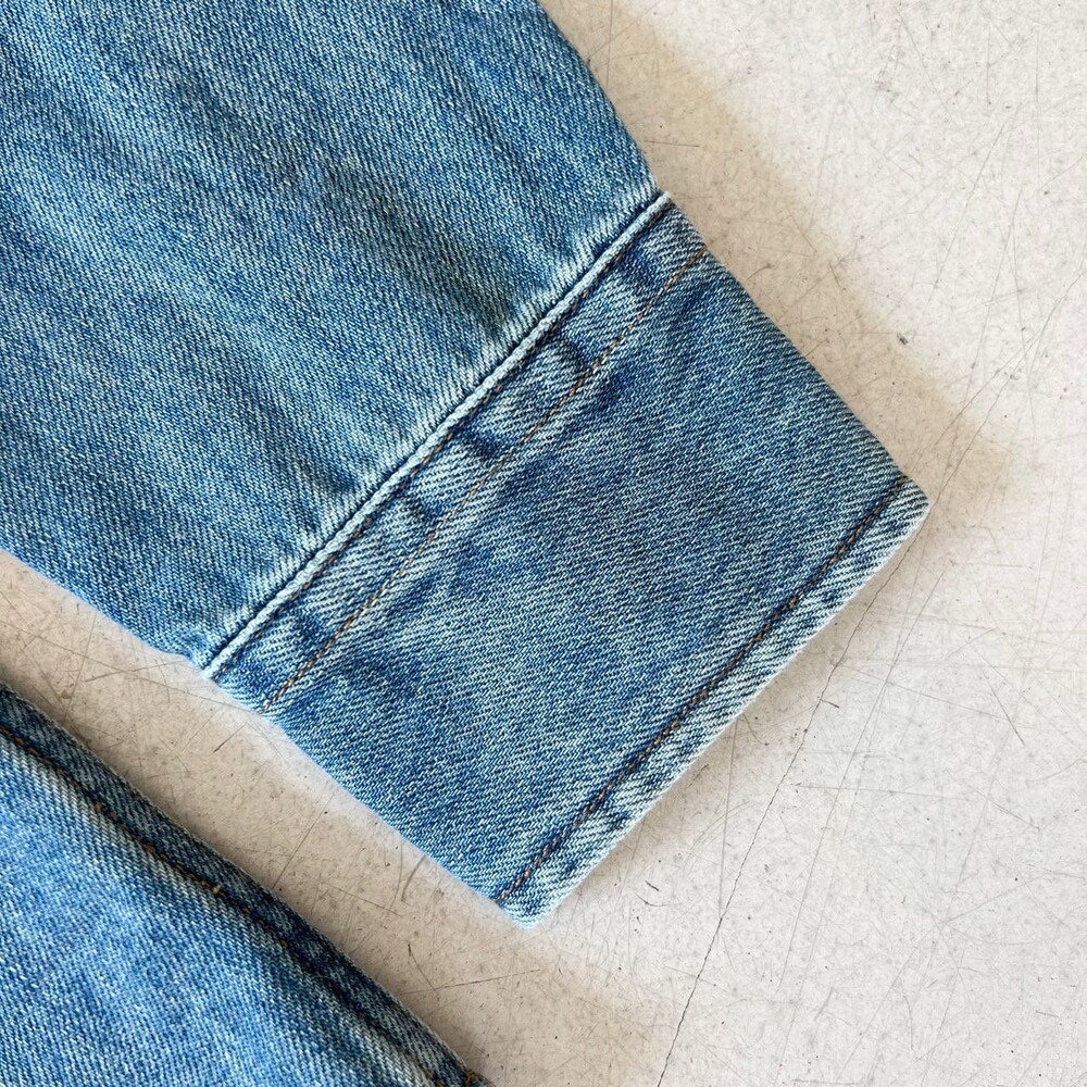 미디엄 인디고 워시로 선염 처리했으며 핸드샌드 디테일이 오래 즐겨 착용한 듯한 룩을 연출하고 오리지널 과 완벽한 싱크로율을 구현하였어요,